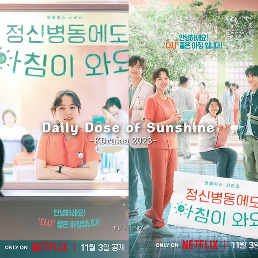 Daily Dose of Sunshine (Korean: 정신병동에도 아침이 와요) is a 2023 South Koreanweb series directed by Lee Jae-kyoo, and starring Park Bo-young, Yeon Woo-jin, Jang Dong-yoon and Lee Jung-eun. It is based on the Kakaowebtoon of the same Korean title by Lee Ra-ha, a former nurse, which highlights the author’s real-life experiences.[3][4] It was released on Netflix on November 3, 2023.[5][6]